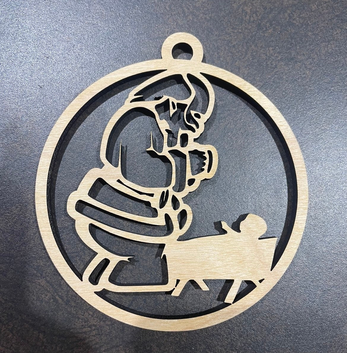 Inform when this item available Santa praying over baby Jesus Christmas ornament 2
