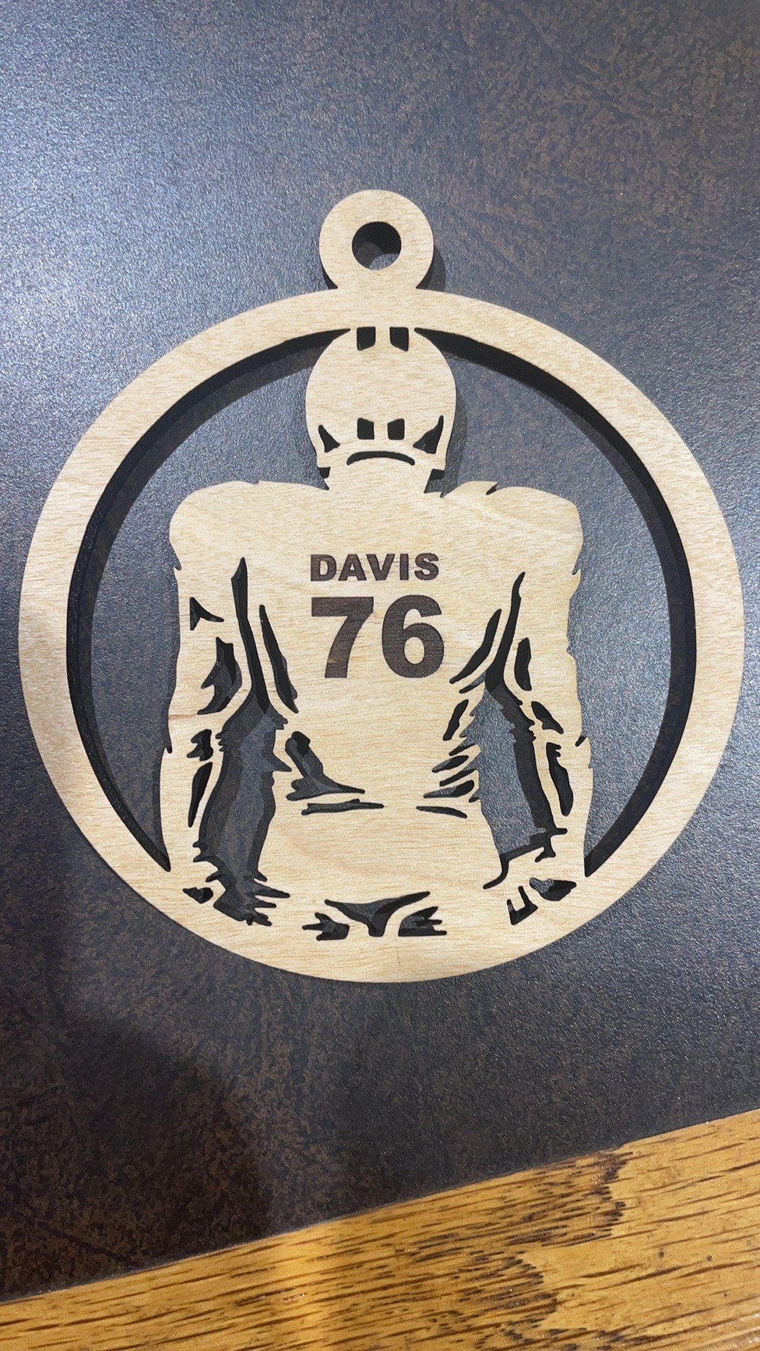 Inform when this item available Football player Christmas ornament customized with your name and #