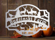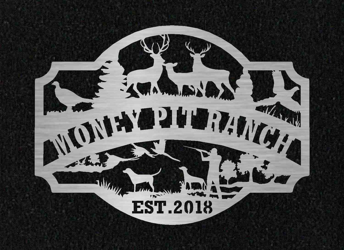 personalized metal sign with hunting scene .Included with the price is customizing with your name.Our finish is a baked on powder coat for a very long lasting durable finish. This will be made from heavy 10ga steel.PLEASE LEAVE NOTE TO SELLER WITH NAME AND OR EST. DATE YOU WANT ON SIGN