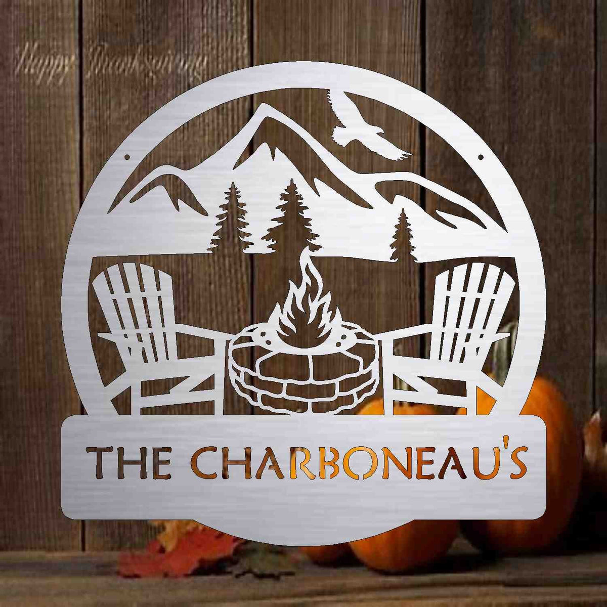 This Stone Fire pit Camping Monogram Sign - Personalized Metal Sign - Home Decor - Monogram Gifts - Patio Decor - Camping Art Monogram is the perfect family name sign for your home or cabin.