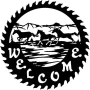 metal sign with horse welcome scene .Our finish is a baked on powder coat for a very long lasting durable finish. This will be made from heavy 14ga steel.