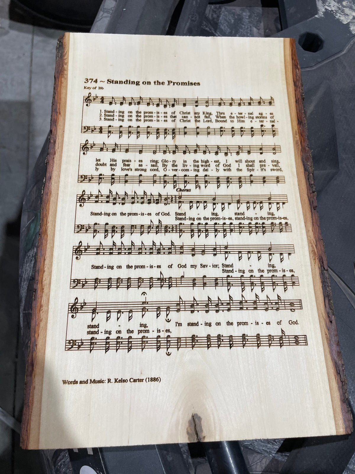 Lazer engraved wooden live edge board with your favorite hymn engraved