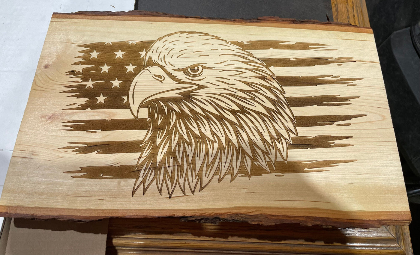 This is a 12 to 13” long to 7” to 9” wide live edge basswood board custom laser engraved with you favorite design or any design or words you choose length and widths may be different depending on the board and how the design fits the best these are treated with a clear finish after engraving let me know what design you like