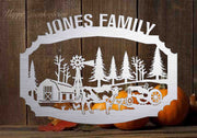 personalized metal sign with farmyard scene .Included with the price is customizing with your name.Our finish is a baked on powder coat for a very long lasting durable finish. This will be made from heavy 10ga steel.PLEASE LEAVE NOTE TO SELLER WITH NAME AND OR EST. DATE YOU WANT ON SIGN