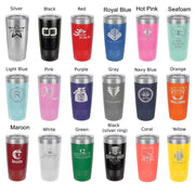 Nice, well made tumblers. Make for the perfect gift for any coffee lover! Also make great gifts for a wedding party or any other special occasion. Can be laser engraved to have name, initials, or any other type of wording. Can also do logos and clip-art style images. Will not engrave copyrighted images.